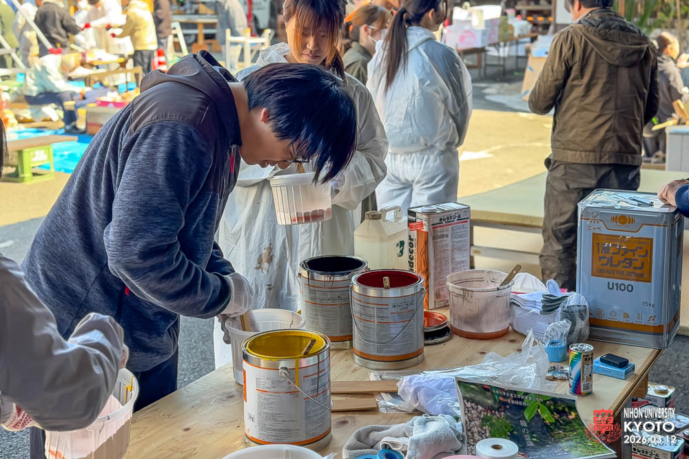 事前に学校で参加者の作業割り振りした場所に配属されてプロの職人の指導の下、完成まで手取り足取りマンツーマンで各パートを仕上げに向かって学生達先生方も一緒に真剣な眼差しで作品造りに没頭しました。